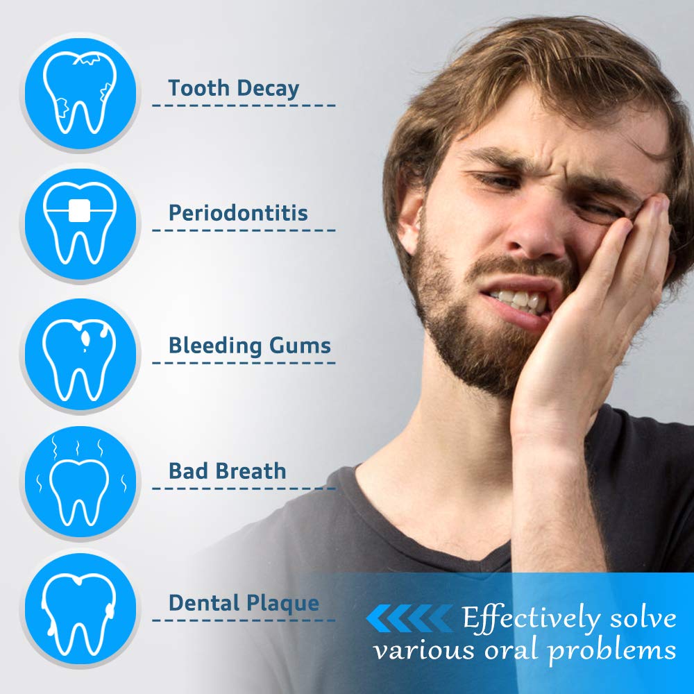 【HIGH EFFICIENCY IMPROVE HEALTHY GUM AND TEETH CLEAN】With 1800 times/minute high pressure water pulse and 4 jet water flosser, 360°rotating long nozzle,The cordless water flosser can powerful cleaning 99.99% food residue every corner precisely that traditional brushing can not reach. Specifically designed for periodontitis, braces.